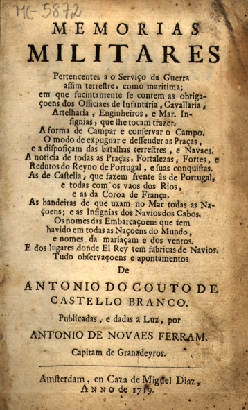 Obras Principais (1719), Memórias Militares. Amsterdão [I]. (1731), Suplemento às Memórias Militares. Lisboa [II]. (1740), Memórias e Observações Militares e Políticas. Lisboa [III]. (1931), Comentários Sobre as Campanhas de 1706 e 1707 em Espanha. Coimbra, Imprensa da Universidade.