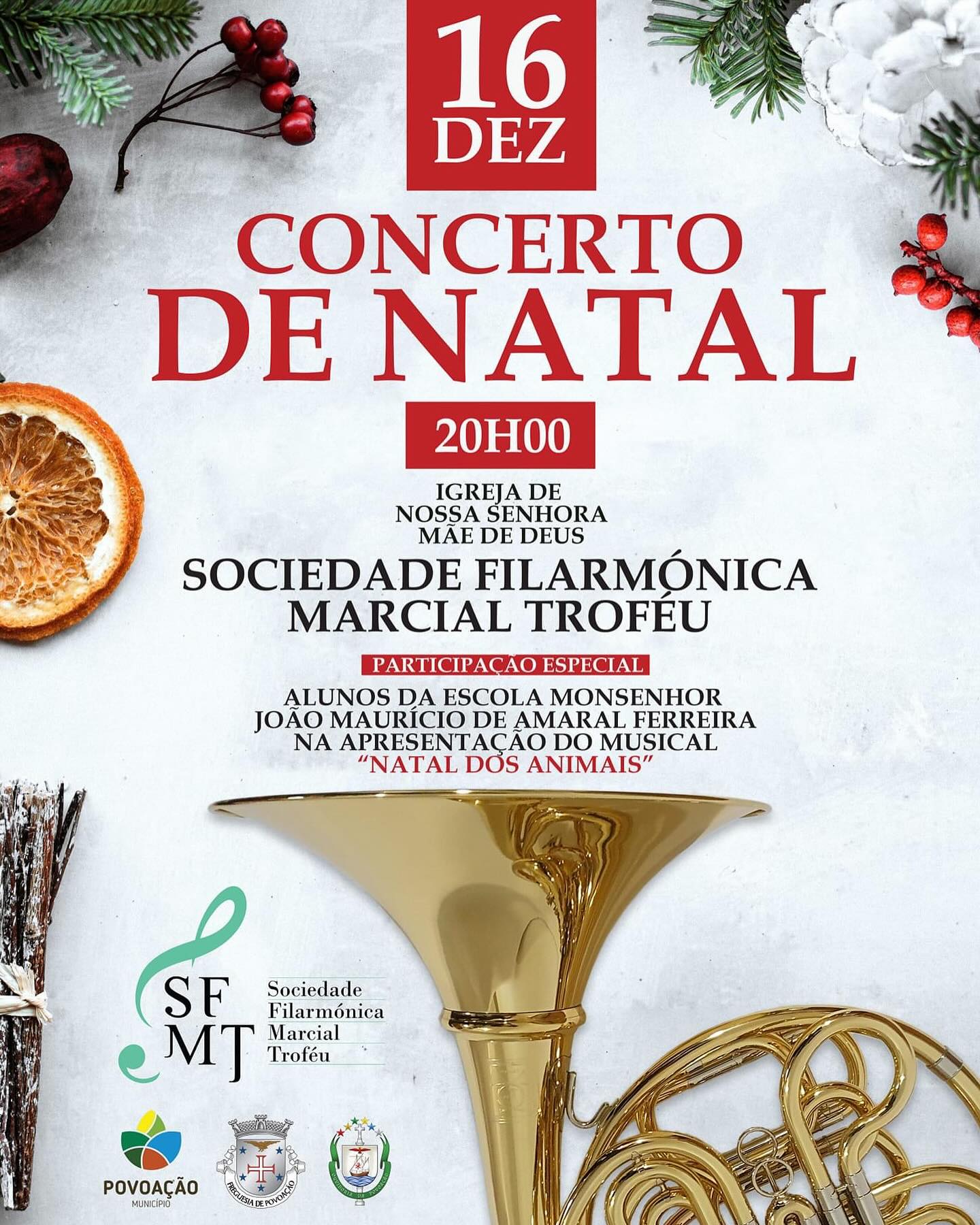 Este fim de semana, 16 de dezembro, Concerto de Natal da Filarmónica Marcial Troféu, na Igreja de Nossa Senhora Mãe de Deus, a partir das 20h00.